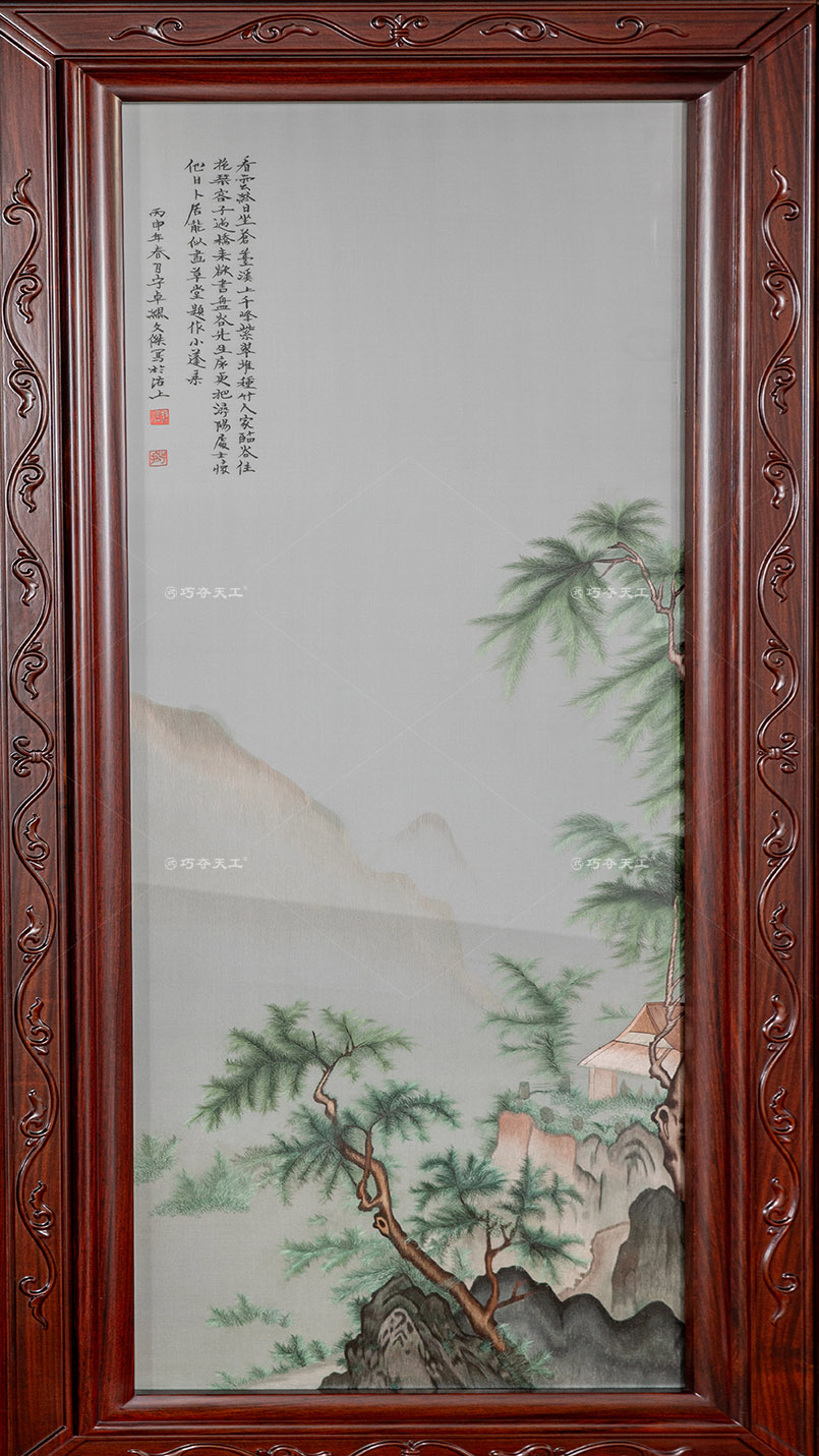 蘇繡四扇屏(山林松柏)
